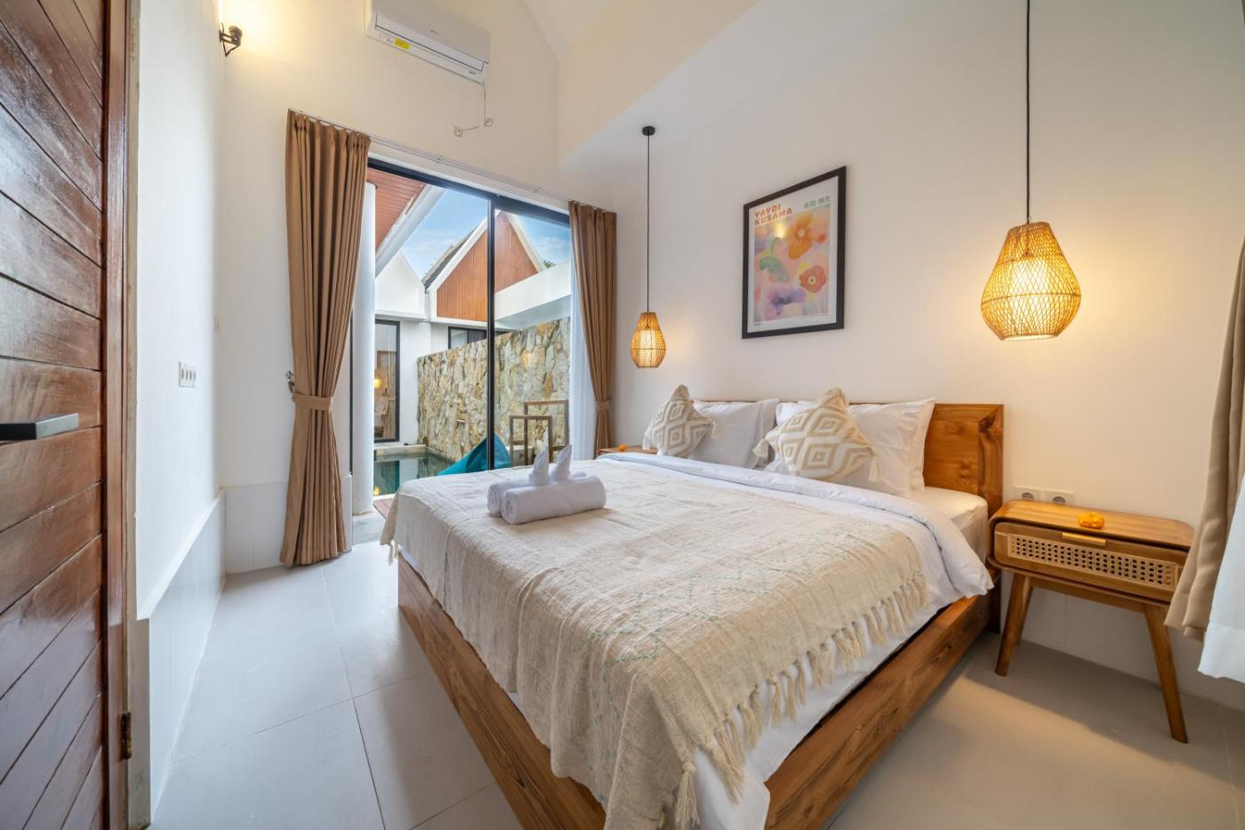 Villa. This villas special feature is the pool with a view. Featuring a private entrance, this air-conditioned villa consists of 1 living room, 2 separate bedrooms and 2 bathrooms with a walk-in shower and a bath. Guests will find a stovetop, a refrigerator, kitchenware and a microwave in the well-fitted kitchen. The villa also offers a barbecue. Boasting a terrace with garden views, this villa also provides soundproof walls and a flat-screen TV with streaming services. The unit offers 2 beds.