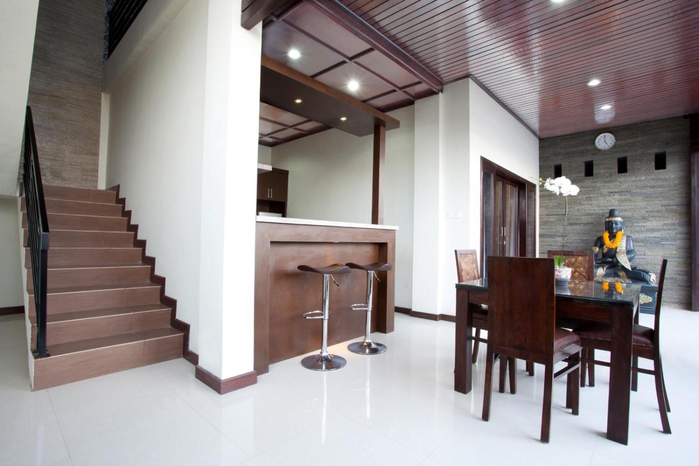 Four-Bedroom Villa with Private Pool. This large modern Balinese villa has 4 bedrooms and a kitchen. Can sleep up to 8 guests. Guests have access to a shared swimming pool.